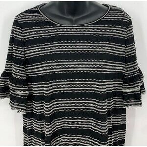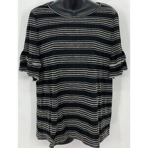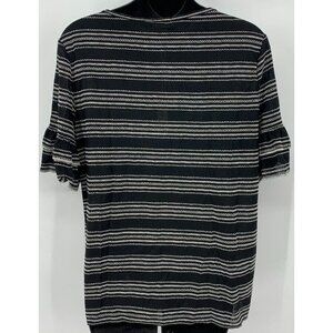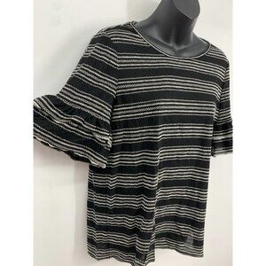 Max Studio Top Size Medium M Black Ivory Stitch Striped Flared Sleeve Women New
