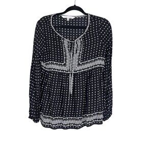 Max Studio Top Women S Black Peasant Floral Tunic Boho Western Retro Indie 80s