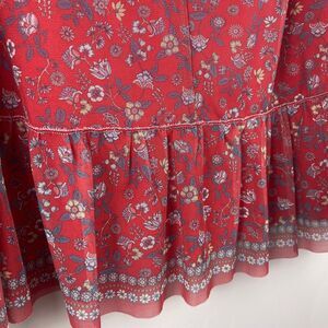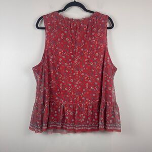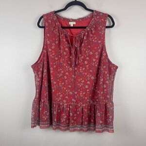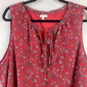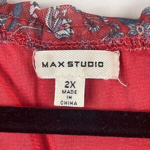 Max Studio Top Women's 2X Red Floral Ditsy Ruffle Neck Tie-Neck Blouse Cottage