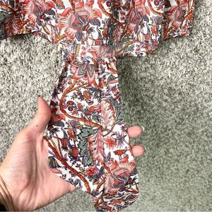New with Tags Women’s Max Studio Crepe Tie Front 3/4 Sleeve Smocked Back Paisley Leaf Print Blouse Top in Size Small