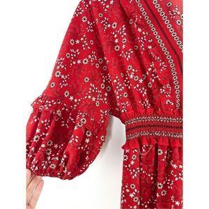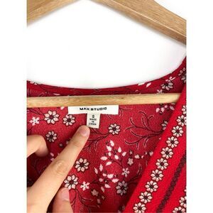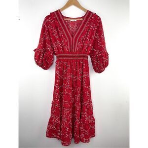 Max Studio V-Neck Empire Waist Dress in Red Size S Puff Sleeve Floral