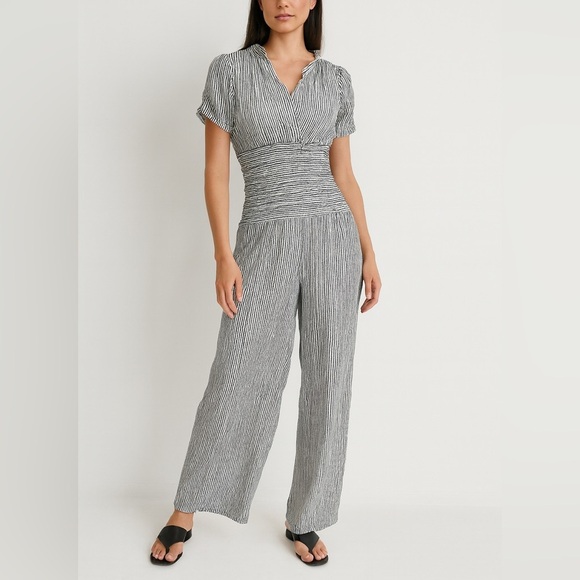 Max Studio V-Neck Smocked Waist Jumpsuit | X-Small