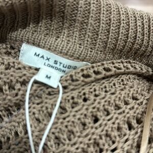 Elegant cream V-neck sweater by Max Studio. Features a stylish knit design. Ideal for layering.