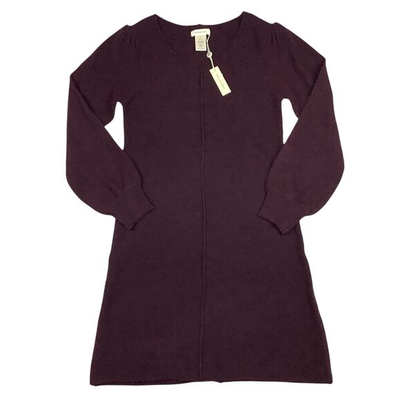 Max Studio V-Neck Sweater Dress Women Size S Long Sleeve Textured Knit Burgundy Maroon Plum