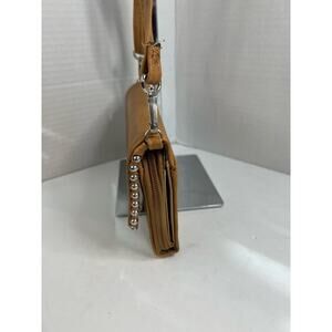 Max Studio Vegan Brown Crossover Handbag Clutch Wallet with Gold Beaded Edge