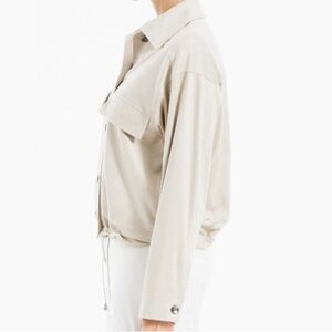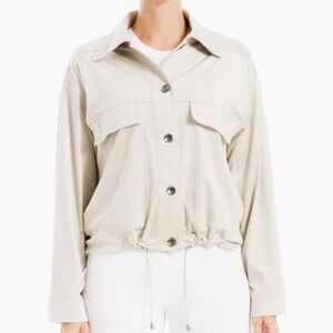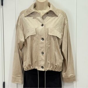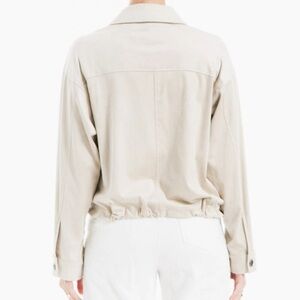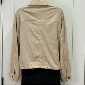 Max Studio Vicuna Faux Suede Bomber Jacket Soft Button Up Oyster Beige Small New