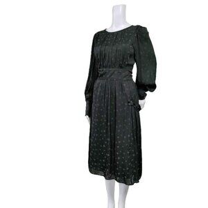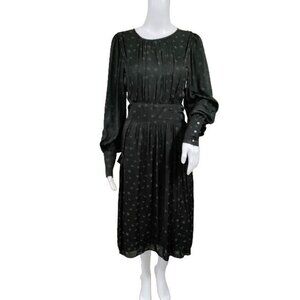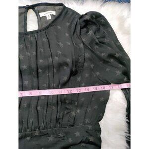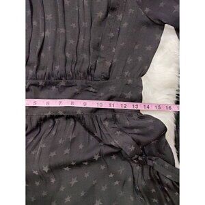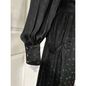 Max Studio Vintage Whimsy Goth Star Pattern Puff Sleeves Pleated Midi Dress M