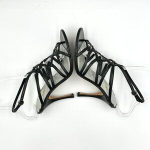 Max Studio Vtg Y2K 2000s Black Leather Artsy Strappy Stiletto Heels