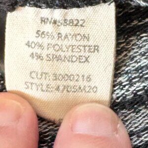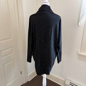Dark Gray Heather Knit Shawl Collar, Open Front Shrug Jacket with Dolman Sleeves and Front Slash Pockets. Fabric is a medium weight knit of 56% Rayon, 40% Polyester, 4% Spandex. Easy care machine washable and dryable. Perfectly paired with jeans or a skirt. In very good preowned condition! Size Medium with measurements taken flat and unstretched: Bust across armpits 24", Length from shoulder to hemline 31 1/2", Sleeve approximately 17".