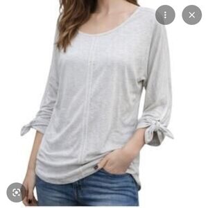 Soft tunic length top with black and white stripes. Perfect for casual wear. EUC. Super soft terry inside. 3/4 tie sleeves. Great for a beach cover up too! 29" length, 21" pit to pit with slight drop arm.