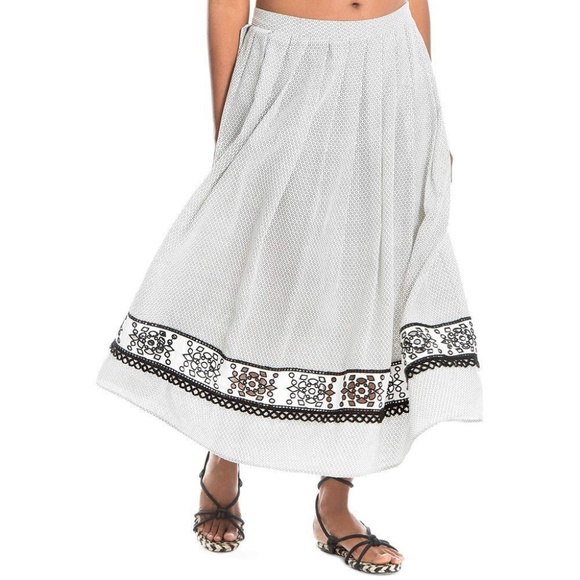 Max Studio White London Cotton A-line Pleated Women's Style Boho Theme Skirt