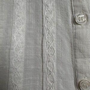 Max Studio White Ruffle Mini Dress. Cotton/Rayon Blend. Embroidery/Buttons chest
