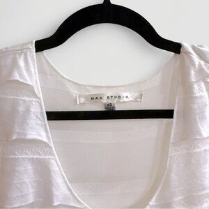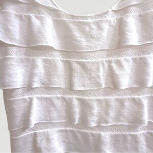 Chic and lightweight, this Max Studio white sleeveless maxi dress features soft horizontal tiered ruffles throughout for a textured, feminine look. The scoop neck and body-skimming silhouette offer a breezy yet flattering fit. Originally $88
