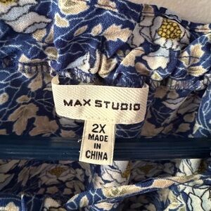 Max Studio White and Blue Flutter Sleeve Blouse 2X