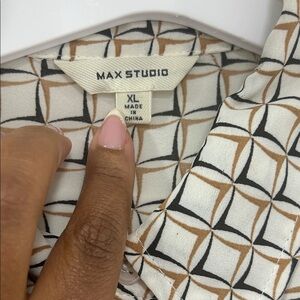 Max Studio White/Black/Gold Checkered Button-Down Shirt