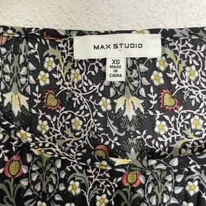 Max Studio Wildflower Floral Black Base Long Sleeve Blouse XS