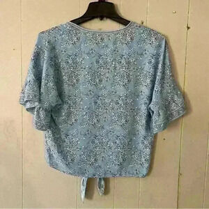 Max Studio Wmn's Blue Floral Short Sleeve Blouse Boho Breezy Size Small