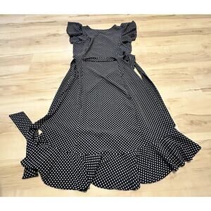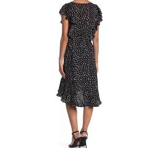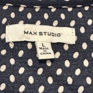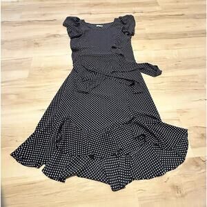 Max Studio Women L Dress Midi Polka Dot Flutter Sleeve Tie Waist Navy Blue