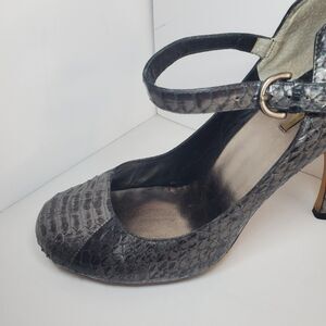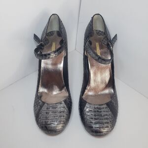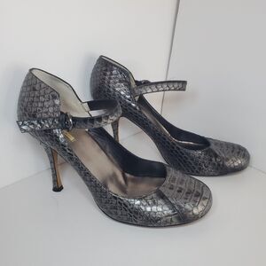 Max Studio Women Mary Jane Pump Size 9.5 Snakeskin Gray Silver Retro Strap Heels
