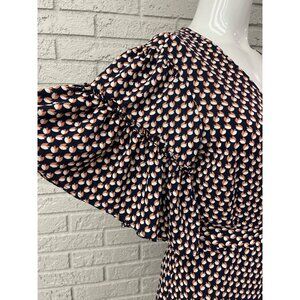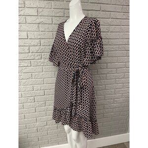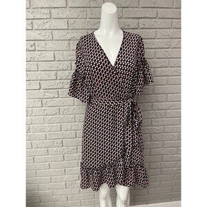 Max Studio Women Multicolored Tulip Motif Ruffle Sleeve Wrap Dress Size M