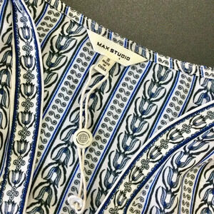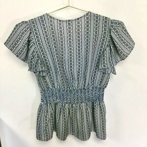 Max Studio Womens Small Flutter Ruffle Sleeve Blouse Blue Tulip Print V Neck NWT