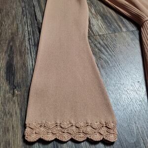 Max Studio Women’s Tan Laced Hem Neckline Long Sleeves Dress