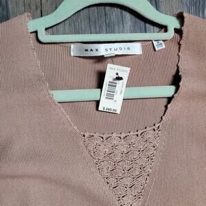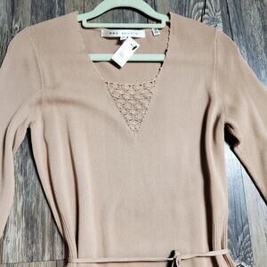Max Studio Women Tan Laced Hem Neckline Long Sleeves Dress Size Small