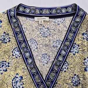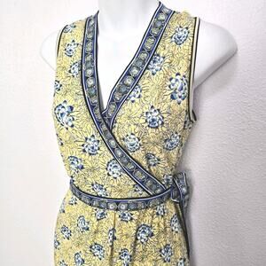 Max Studio Women Yellow Floral Casual Wrap Dress S 4 Way Stretch Sleeveless