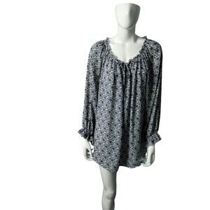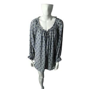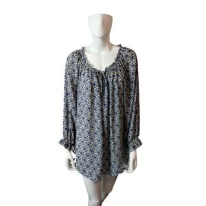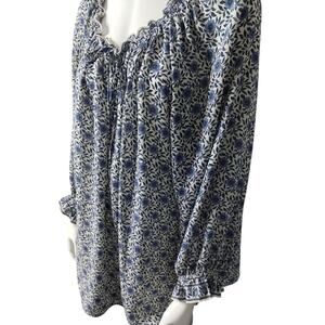 Max Studio Womens 2X Boho Flowy Peasant Floral Top Smocked Balloon Sleeve Flowy
