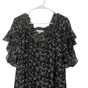 Max Studio Womens 3X Floral Ruffle Sleeve Top Blouse Black-Beige Polyester