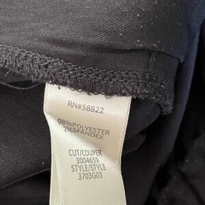 Description: Black pull on flat front shirt. High rise. Pockets. Elastic waist in back.