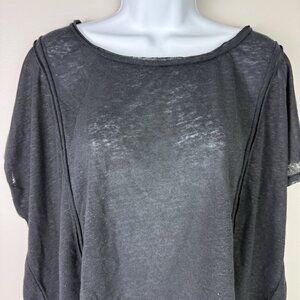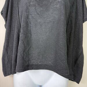 Max Studio Women's Black Linen Blend Short Sleeve Slouchy Oversized Top Size L