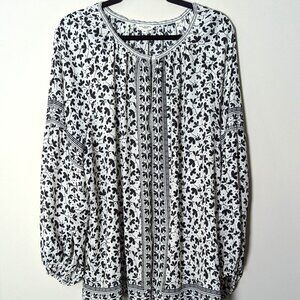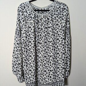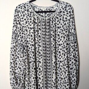 Max Studio Women's Black & White Floral Print Boho Inspired Blouse. Size 3X