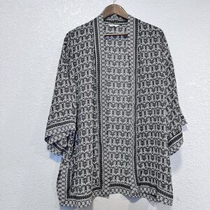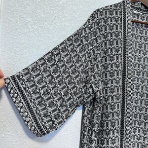Max Studio Womens Black White Tribal Print Open Kimono Top Size Large Flowy