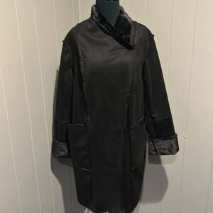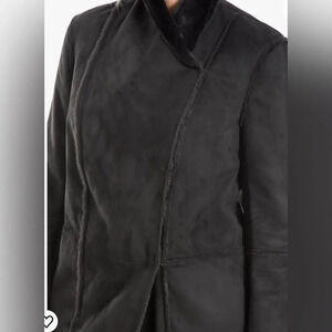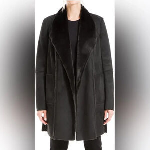 Max Studio Women's Black Faux Fur Suede Long Jacket