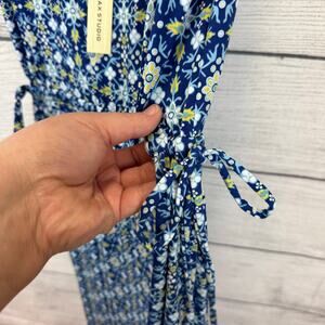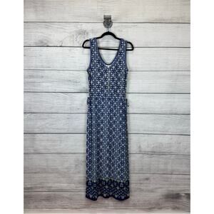 Max Studio Women's Blue & Yellow Print Sleeveless Waisted Maxi Dress Size Medium