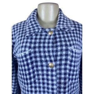Max Studio Womens Blue/White Fuzzy Checker Jacket Snap Button Front Size M