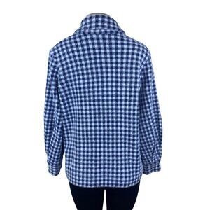 Max Studio Women's Blue/White Fuzzy Checker Jacket Size M is crafted with attention to style and comfort. Featuring a soft, textured material and a lightweight feel, it's perfect for layering in cooler weather. Designed with snap closures and a classic checker pattern, it provides a casual, versatile look.