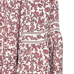 Max Studio Womens Boho Pink Floral Bubble Sleeve Half Button Crepe Blouse XL