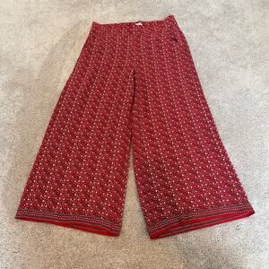 All orders ship within 1-3 business days. These women's pull on wide leg pants are made by Max Studio. Color is red with a pattern. Size is M. Excellent condition. Fabric 96% polyester and 4% spandex. Make me an offer! Although clothing is not visibly soiled we recommend washing all preloved items before wear.
