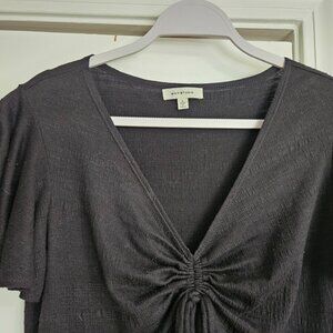 Max Studio Women’s Cinched Front Flutter Sleeve Midi Dress - Black, Size L