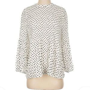 Max Studio Women’s Cream & Black Polka Dot Hearts Long Sleeved Pleated Top SZ L