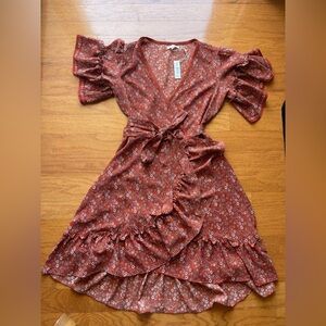 🆕 Max Studio Women's Crepe Ruffle Sleeve Wrap Short Dress Size Small