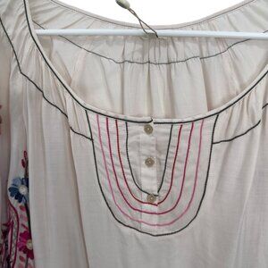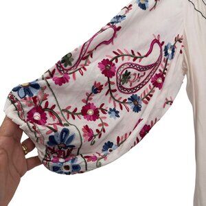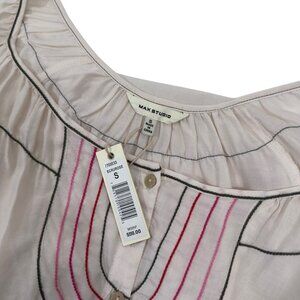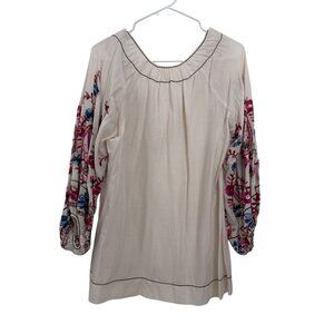 Max Studio Womens Embroidered Sleeve Boho Peasant Blouse SZ S 100% Rayon Beige