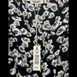 Max Studio Womens Floral Flutter Sleeve Midi Dress Black XS NWT $128
