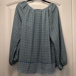 Max Studio Women’s Floral Peasant Keyhole Tunic Top Blouse Size L Green Blue