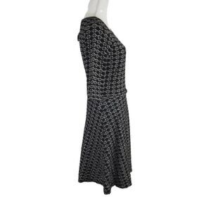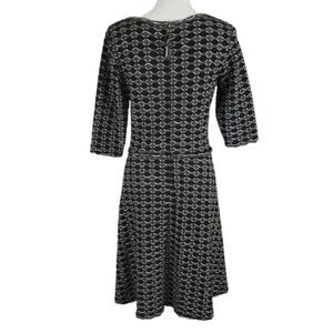 Max Studio Women’s Geometric Fit & Flare Dress – Scoop Neck, Textured Knit, Black/Grey