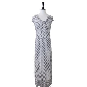Max Studio Women's Gray White Maxi Skirt Drape Neck Shirred Top Set Size M/L