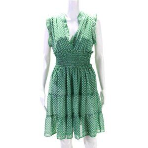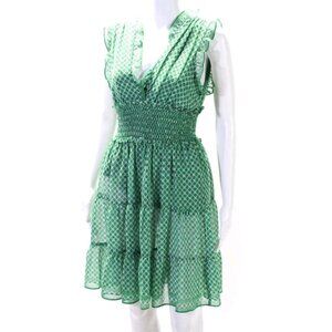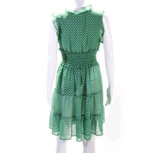 Max Studio Womens Green Printed Smocked Cap Sleeves Layered Dress Size Small