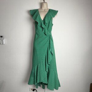 Max Studio Green Faux Wrap Ruffle Midi Dress – Size M